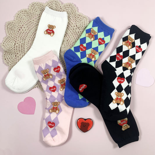 Women's Crew Love Heart Bear Socks