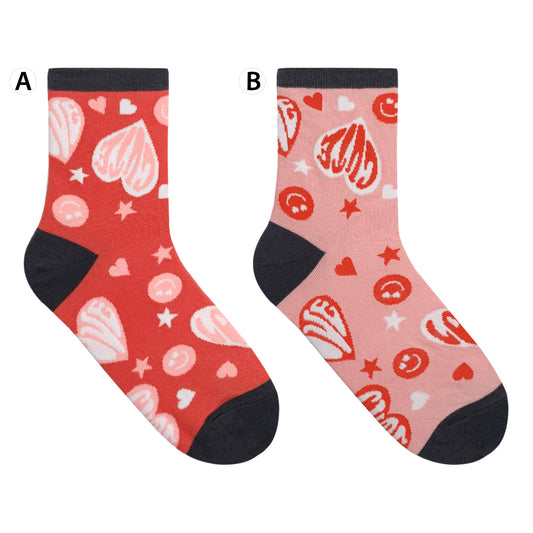 Women's Crew Love & Cute Heart Mismatched AB Socks