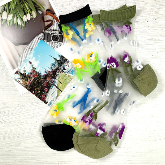 Women's Crew See-Through Fleur Socks