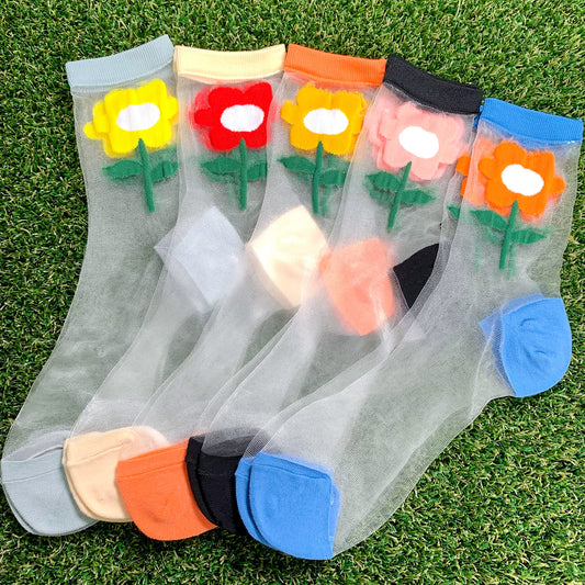Women's Crew See-Through Rainbow Flower Socks