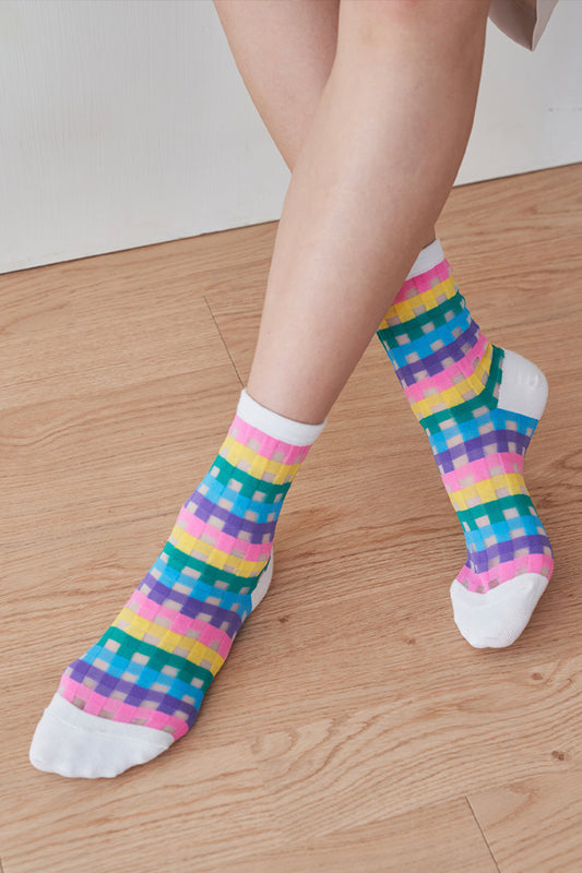 Women's Crew See-Through Rainbow Check Socks