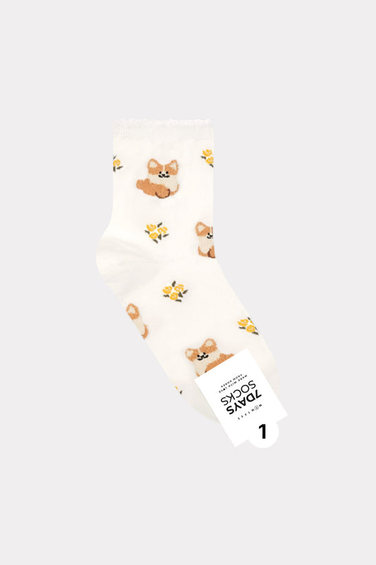 Women's Crew Line Puppy's Socks - Made in Korea