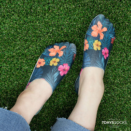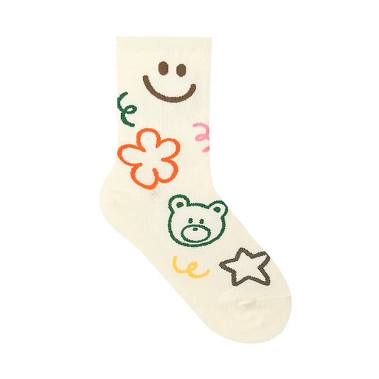 Women's Rose Flower Pattern Crew Socks - Made in Korea